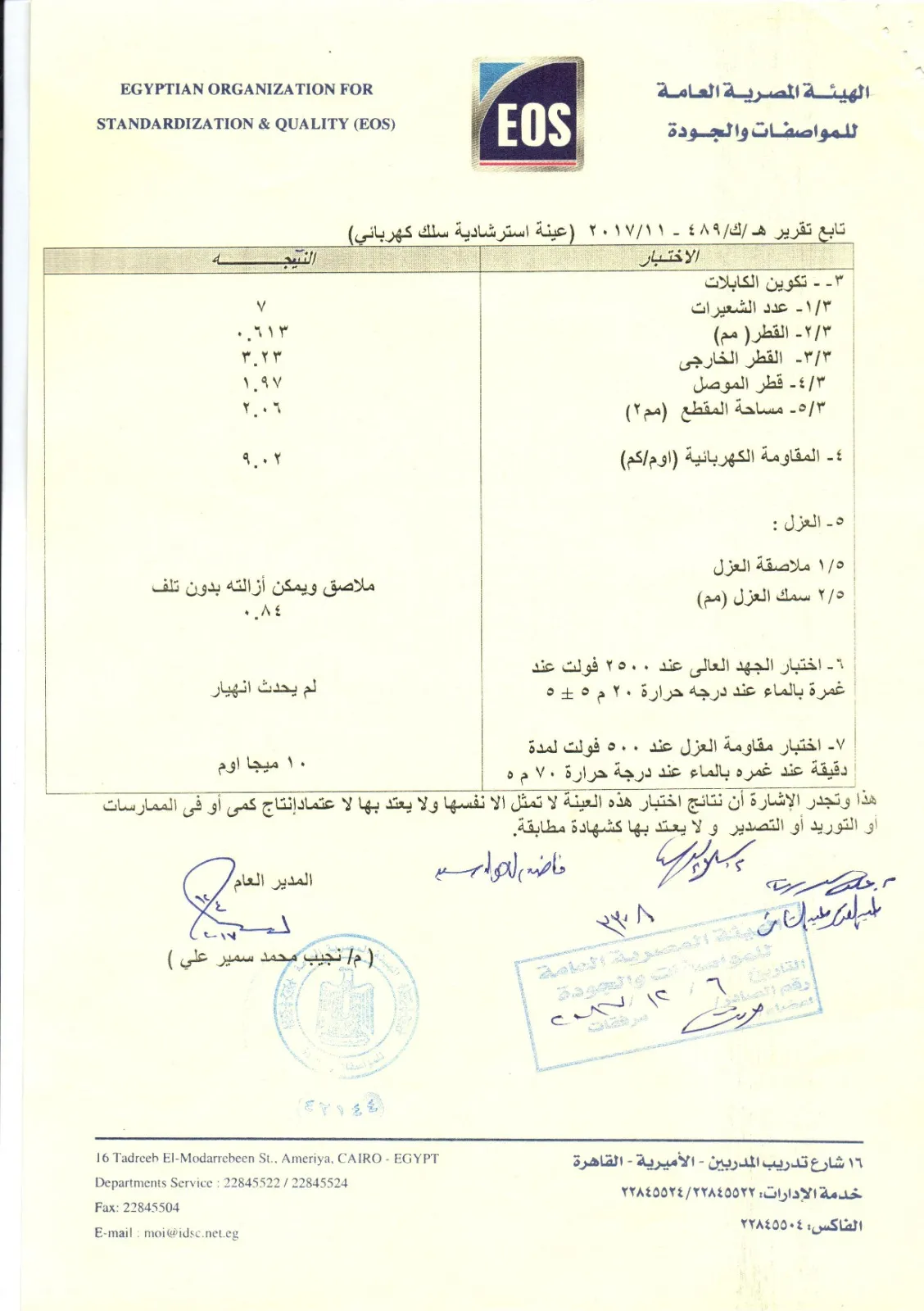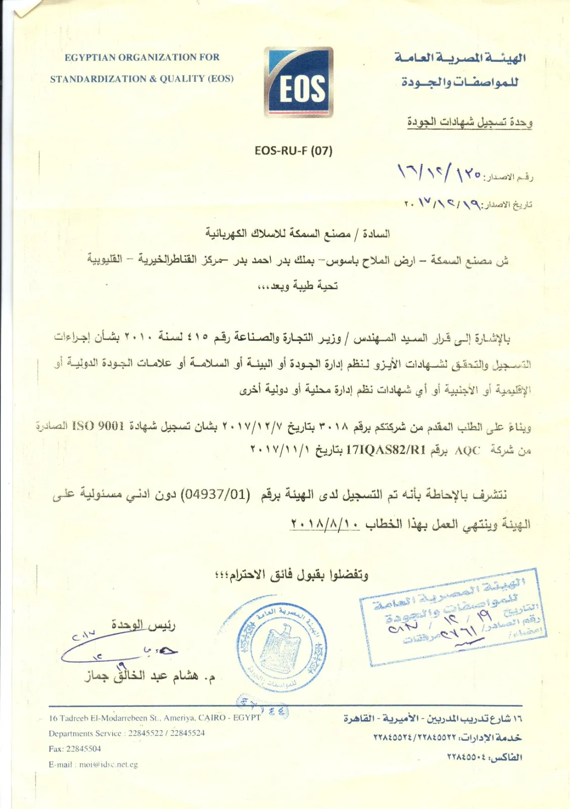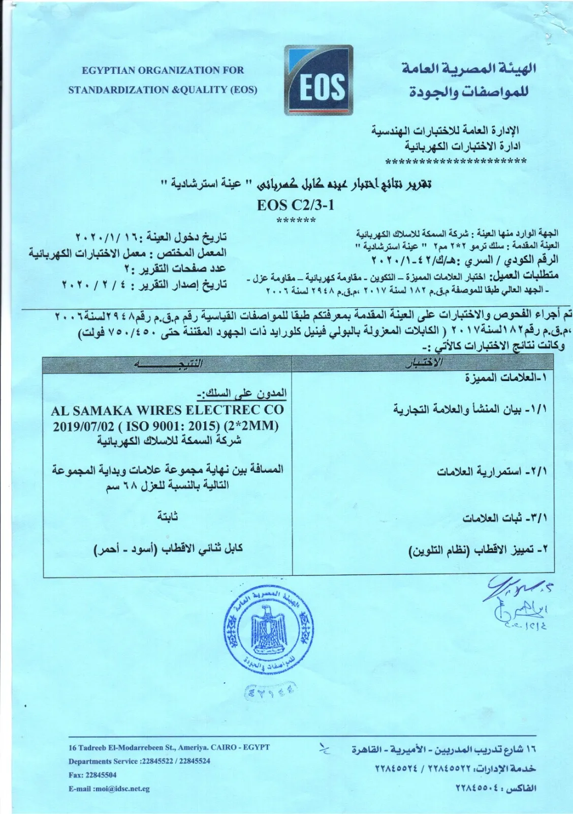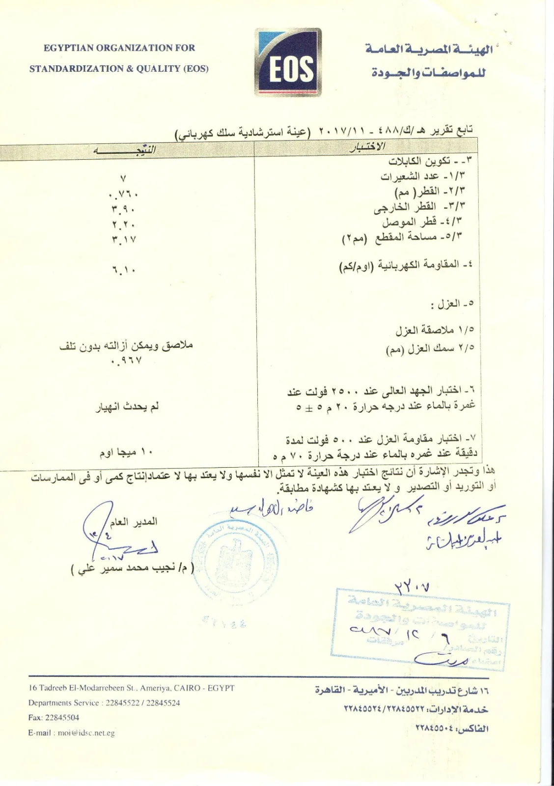 شركهالسمكهاسميرتقيبمعاييرالاسلاكالكهربائيه,لنوصلكلاعليدرجاتالامانوالاعتماديه