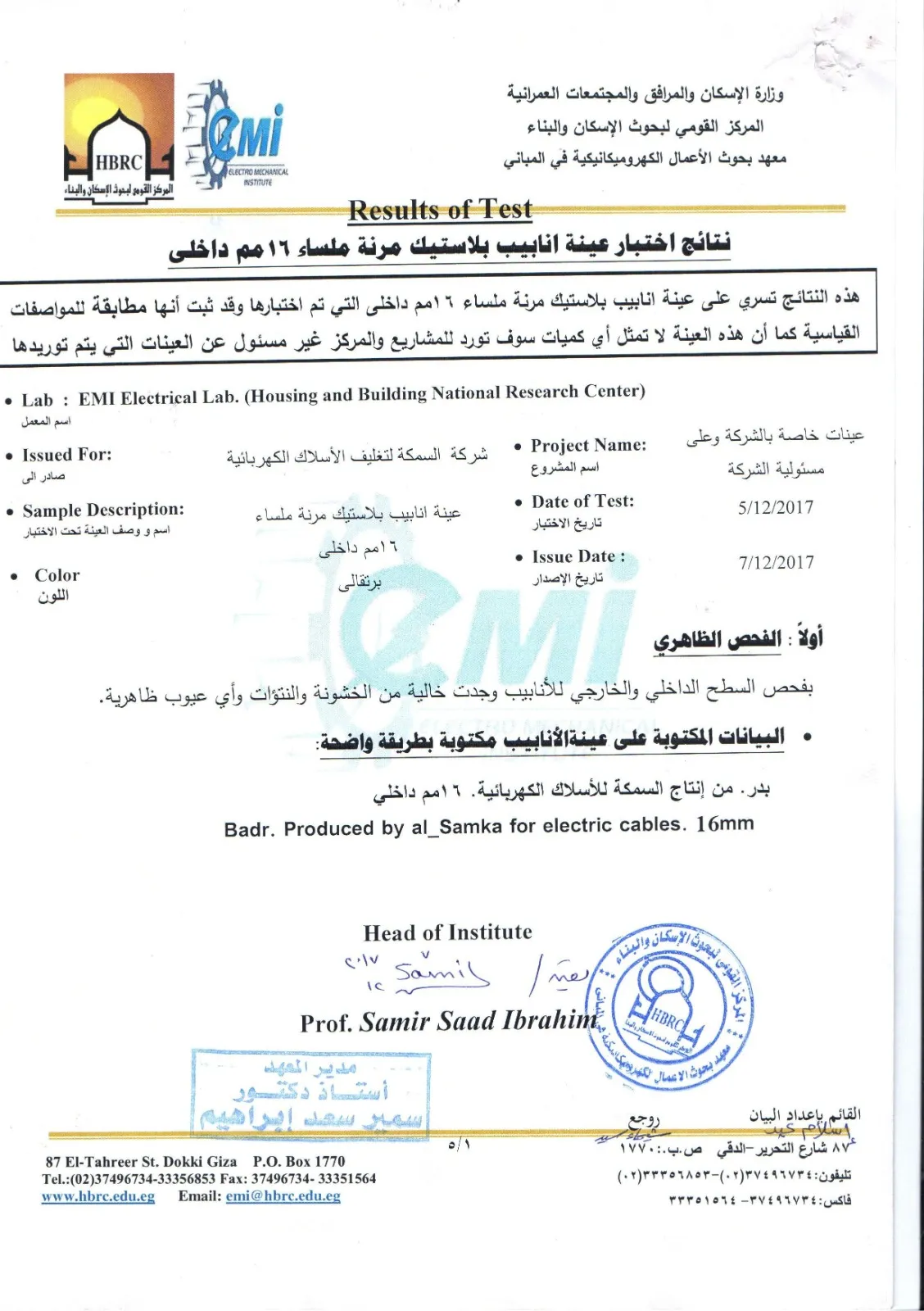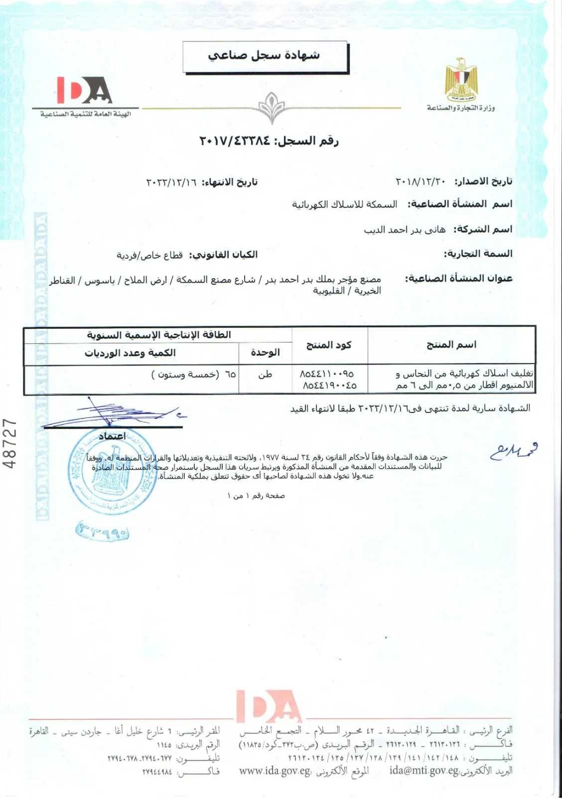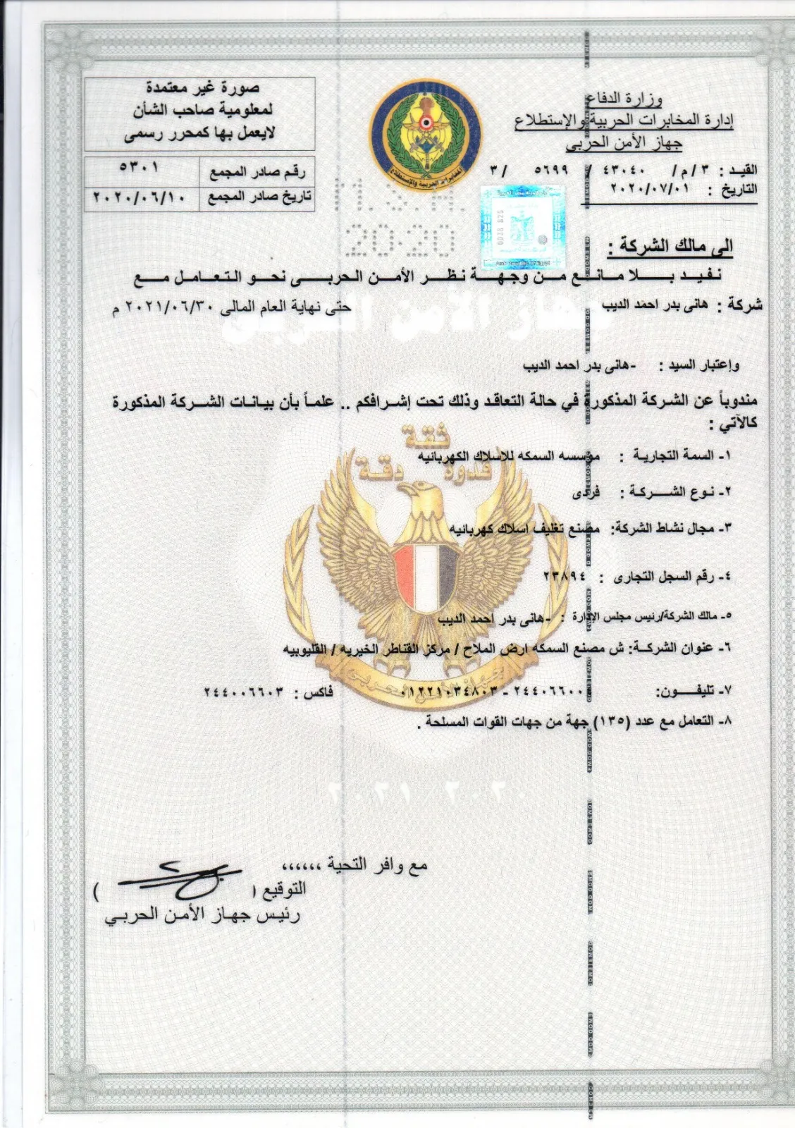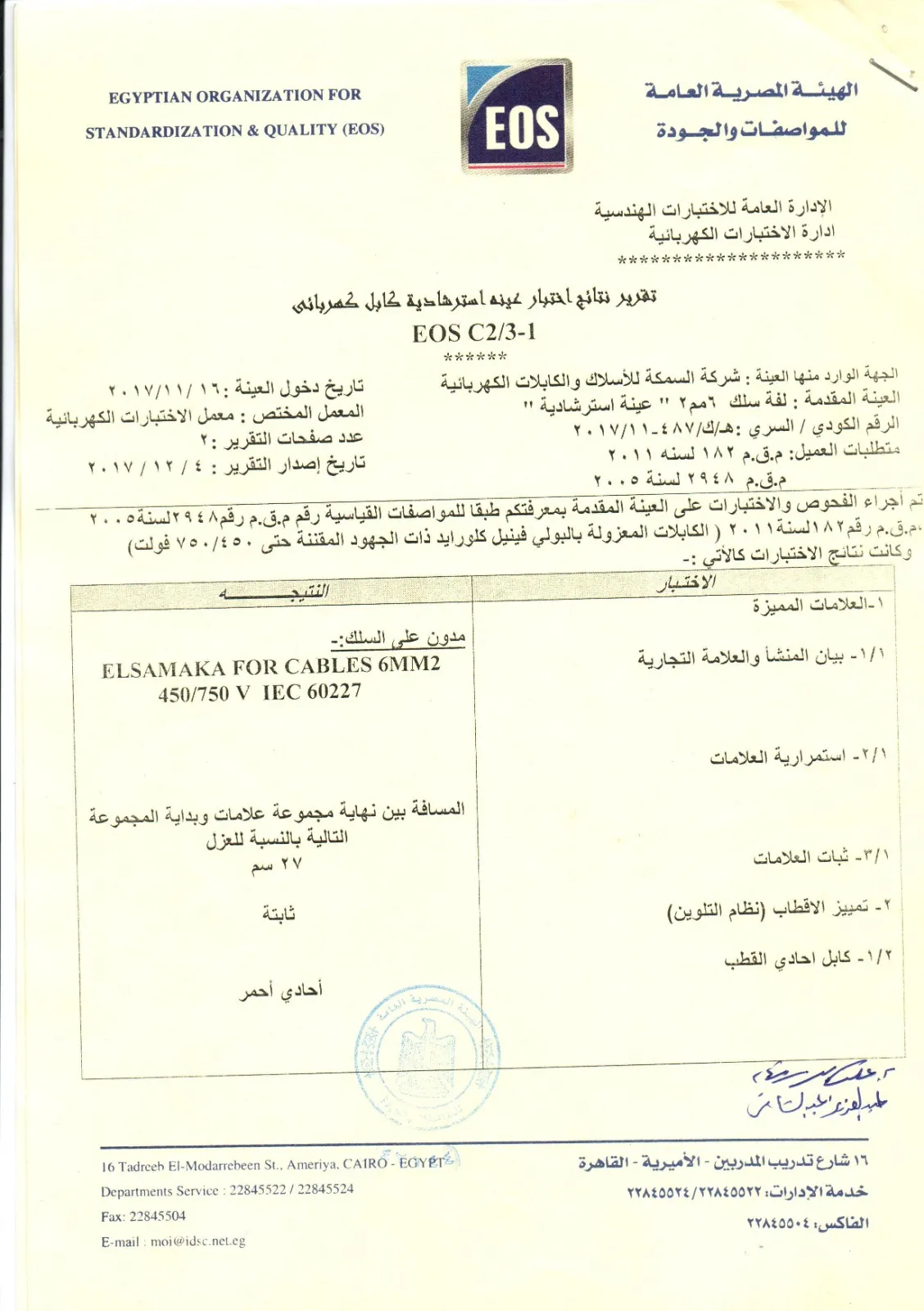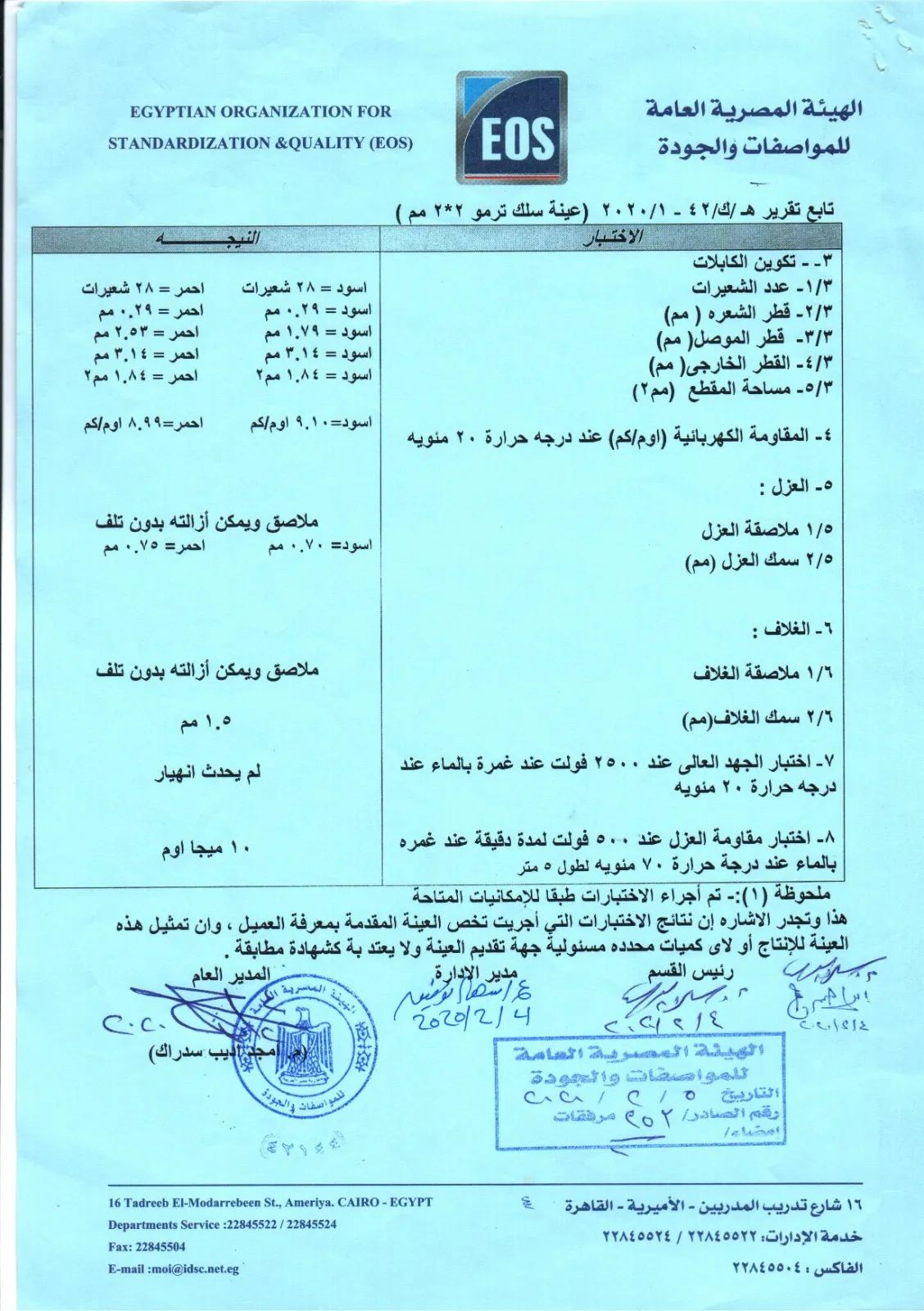 شركهالسمكهاسميرتقيبمعاييرالاسلاكالكهربائيه,لنوصلكلاعليدرجاتالامانوالاعتماديه